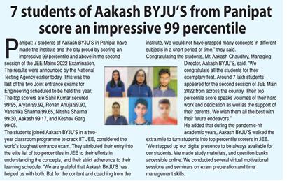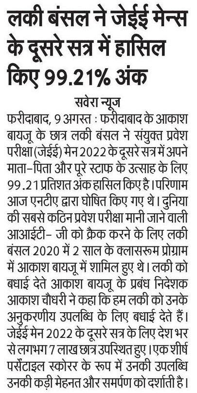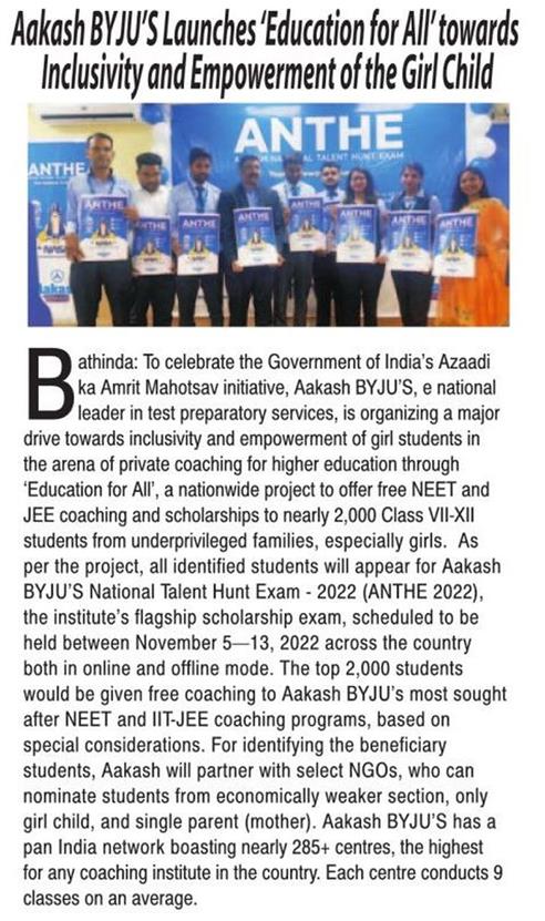 Dainik Savera Edition: Chandigarh Date: 10 August, 2022 |