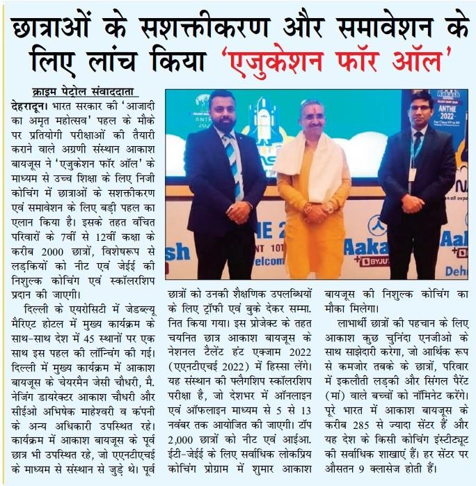 Hindustan Edition: Dehradun Date: 12 August, 2022 |