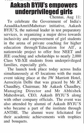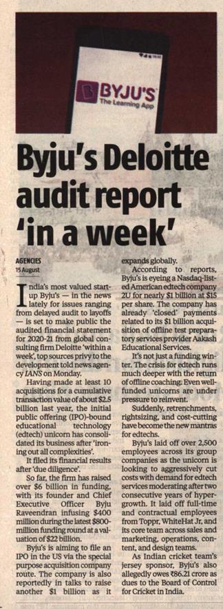 Business Standard Edition: Chennai Date: 17 August, 2022 |