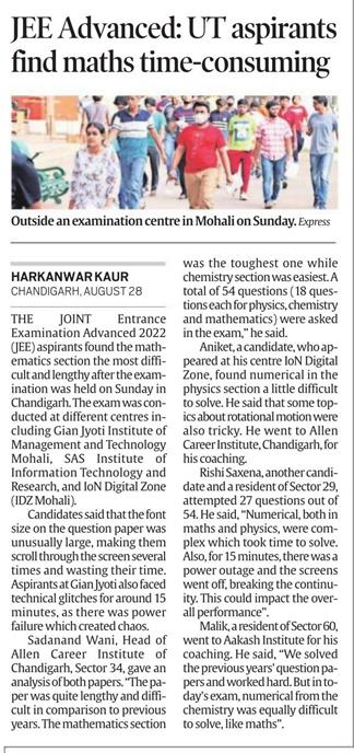 The Indian Express Edition: Chandigarh Date: 29 August, 2022 |