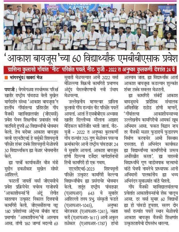 Aakash Media Coverage The Times of IndiaEdition: DelhiDate: 27 November, 2023 Bhangar BhuyeEdition: GoaDate: 07 November, 2023